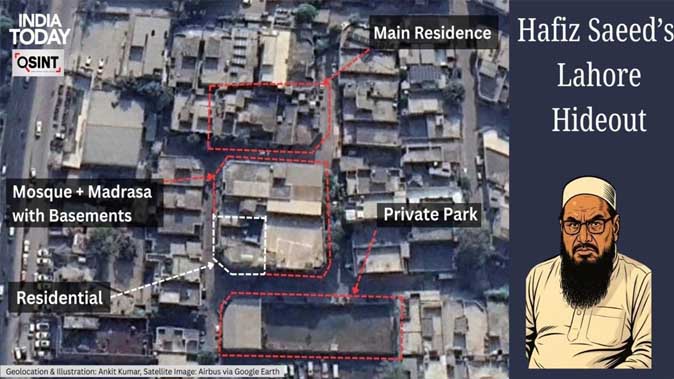 रिपोर्ट के मुताबिक, हाफिज सईद के सीक्रेट ठिकाने की जो तस्वीरें और वीडियो सामने आए हैं. उनसे पता चला है कि एक इमारत में हाफिज सईद अपने परिवार के साथ रहता है. इसके ठीक सामने हाफिज का प्राइवेट पार्क है.इसी परिसर की बिल्डिंग नंबर दो में मंदिर और मदरसा है, जिसके नीचे बंकर बना हुआ है. यहां उनकी सिक्योरिटी रहती है. यहां से हाफिज ऑपरेट करता है.