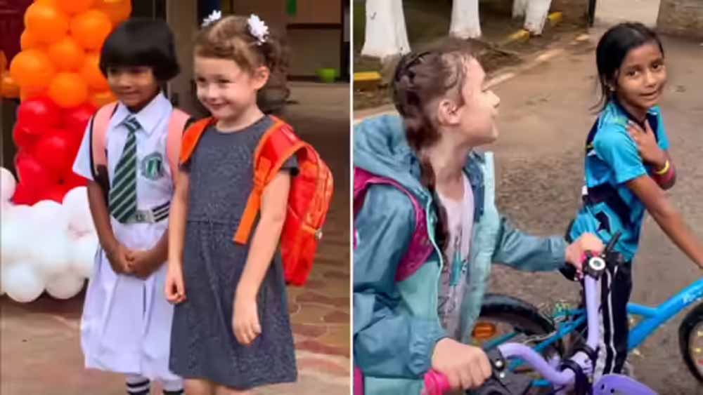 दोनों बच्चियां वीडियो में एक साथ सुर मिला रही हैं। इंस्टाग्राम पर 2022 की कुछ तस्वीरें भी शेयर की गई हैं, जिसमें उस वक्त की यादें हैं, जब परिवार भारत आया था। कैप्शन में लिखा है- 'भारत में 3 साल। दोस्त और सहपाठी.. दोस्ती के 3 साल।' इस वीडियो को लोगों द्वारा खूब पसंद किया जा रहा है।