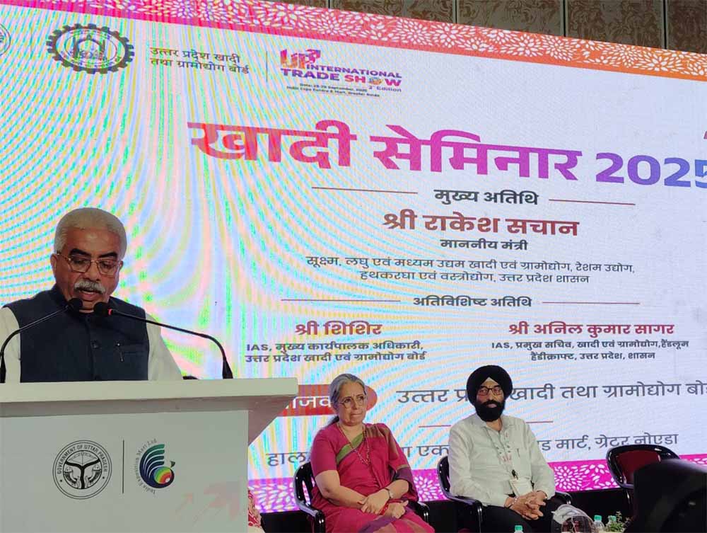 केंद्र सरकार द्वारा जीएसटी स्लैब में कटौती के बाद उत्तर प्रदेश सरकार ने उद्यमियों को बड़ा तोहफा दिया है। खादी एवं ग्रामोद्योग मंत्री राकेश सचान ने घोषणा की कि प्रदेश के सभी 75 जिलों में 9 से 16 अक्टूबर तक आठ दिवसीय ट्रेड शो आयोजित किए जाएंगे। इन कार्यक्रमों में उद्यमियों को निःशुल्क स्टॉल उपलब्ध कराए जाएंगे ताकि वे अपने उत्पादों का व्यापक प्रचार-प्रसार कर सकें। यह घोषणा मंत्री ने यूपी इंटरनेशनल ट्रेड शो (UPITS) के चौथे दिन “खादी फॉर नेशन, खादी फॉर फैशन” विषय पर आयोजित सेमिनार में की।