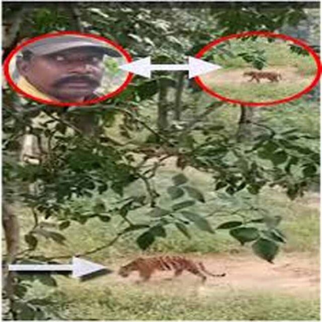 जंगल में नजदीकी मुकाबला: बाघ के सामने फॉरेस्ट गार्ड ने दिखाई दमदार सूझबूझ