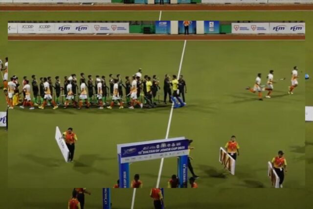 मलेशिया के जोहर बाहरु में आयोजित सुल्तान जोहर कप में भारतीय जूनियर हॉकी टीम और पाकिस्तान के बीच मंगलवार को एक मुकाबला खेला गया. लेकिन इस मैच की शुरुआत से पहले दोनों टीमों के खिलाड़ियों ने एक-दूसरे से हाथ मिलाया. जिसकी चर्चा अब सोशल मीडिया पर हो रही है. ये चर्चा इसलिए लाजमी है क्योंकि पहलगाम हमले के बाद बढ़े तनाव के बाद दोनों देशों ने खेल के मैदान पर भी एक-दूसरे से दूरी बनाकर रखी थी. एशिया कप में भारतीय क्रिकेट टीम ने पाक खिलाड़ियों से हाथ नहीं मिलाया था. ये परंपरा महिला वनडे वर्ल्ड कप मैच में भी जारी रही थी.