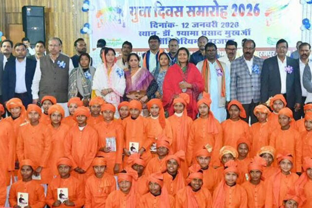 राष्ट्रीय युवा दिवस (स्वामी विवेकानंद जयंती) के अवसर पर सूरजपुर जिला स्थित डॉ. श्यामा प्रसाद मुखर्जी ऑडिटोरियम में आयोजित जिला स्तरीय समारोह में एक ऐतिहासिक और प्रेरणादायी दृश्य देखने को मिला, जब जिले के 400 स्कूली विद्यार्थी स्वामी विवेकानंद की वेशभूषा में कार्यक्रम में शामिल हुए। मंत्री श्रीमती राजवाड़े ने इस दृश्य को अद्भुत बताते हुए कहा कि ऐसा प्रतीत हो रहा है मानो स्वामी विवेकानंद की ऊर्जा स्वयं युवाओं के माध्यम से मंच पर साकार हो उठी हो।