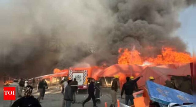 माघ मेले में हड़कंप: पूजा के दौरान आश्रम धूं-धूं कर जला, 6 टेंट स्वाहा, तीन फायरमैन झुलसे
