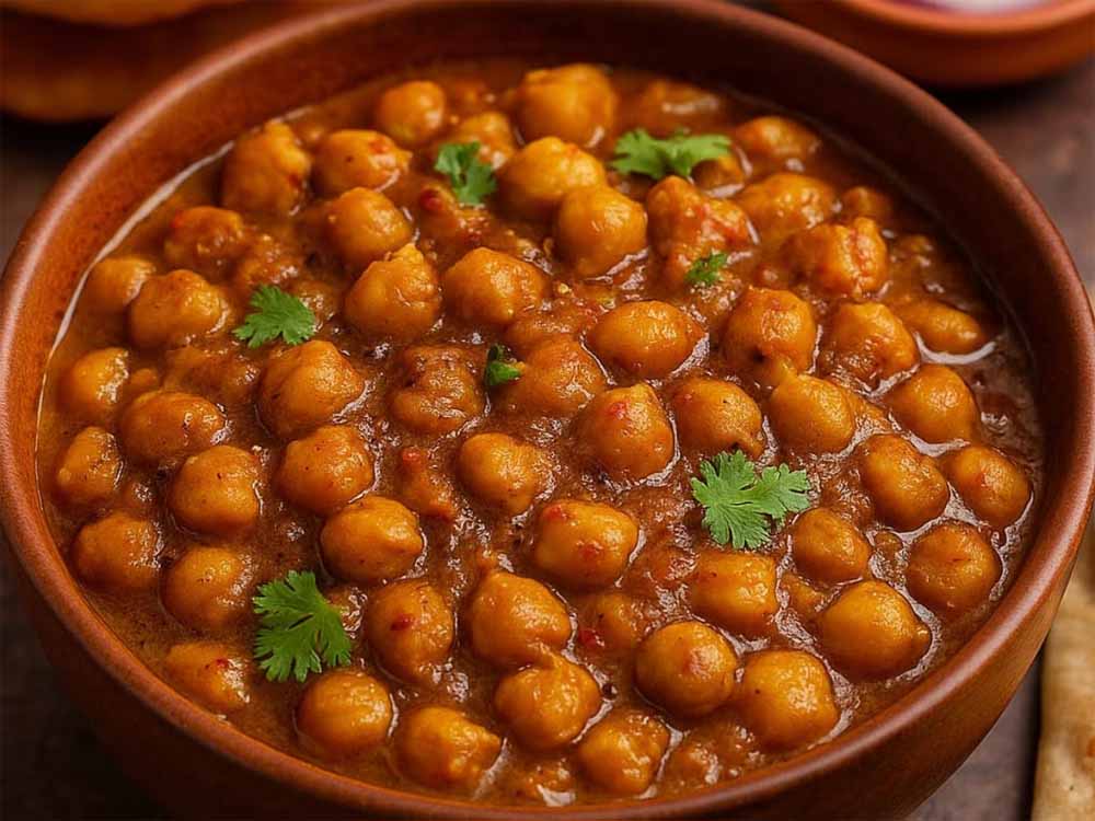 ढाबा-स्टाइल, चटपटे और स्वादिष्ट मसालेदार छोले तैयार हैं।