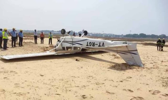 कर्नाटक के विजयपुरा जिले के बालेश्वर तालुक के मंगलुरु गांव में रविवार दोपहर एक प्राइवेट मिनी विमान खुले मैदान में क्रैश हो गया। हादसे में पायलट समेत दोनों यात्री बाल-बाल बच गए।