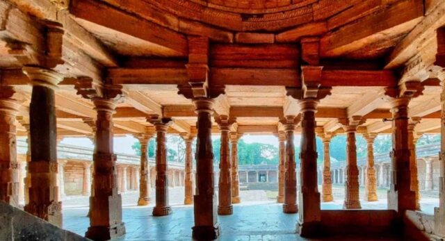 सर्वे रिपोर्ट के अनुसार पूर्वी भाग में स्तंभों की कतार में लगे एक बड़े शिलालेख में प्राकृत भाषा में दो कविताएं अंकित हैं, जिनमें प्रत्येक में 109 छंद हैं। रिपोर्ट में यह भी बताया गया है कि पश्चिम दिशा में स्थित मेहराब की दीवारें बेसाल्ट से बने चबूतरे से सटी हुई हैं, जिसके नीचे नक्काशी मौजूद है। चबूतरे और मेहराब की दीवारों की निर्माण शैली अलग-अलग बताई गई है।