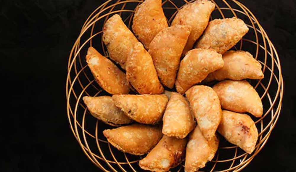 इसके बाद आटे की छोटी लोइयां बेलकर उसमें तैयार स्टफिंग भरें और गुजिया के सांचे या हाथ से डिजाइन दें।