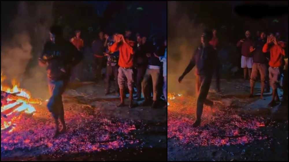 होलिका दहन के बाद अंगारों पर लोग चले। हर वर्ष होलिका दहन के बाद जब लकड़ियां जलकर अंगारों में बदल जाती हैं, तब अंगारों की परत बिछाई जाती है। इसके बाद गांव के पुरुष श्रद्धापूर्वक नंगे पांव उन पर चलते हैं।