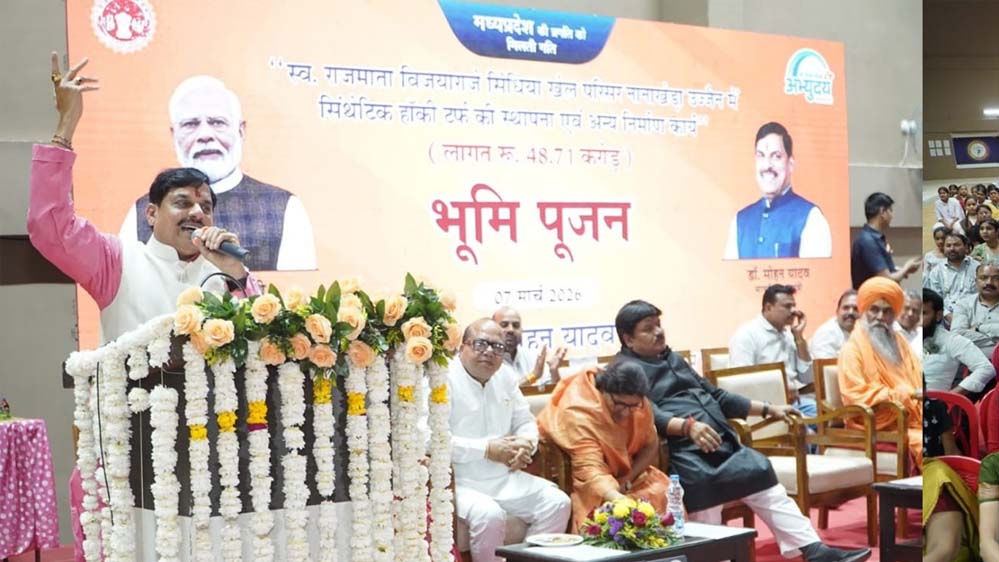 मुख्यमंत्री डॉ. मोहन यादव ने कहा कि भगवान महाकालेश्वर और गोपाल कृष्ण की हम सभी पर विशेष कृपा है। उनके आशीर्वाद से आज उज्जैन और पूरे प्रदेश के खिलाडियों को सौगात मिलने जा रही है। स्पोर्टस कॉम्प्लेक्स में निरंतर उज्जैन में विकास के कार्य हो रहे है। खेल केवल मनोरंजन नहीं बल्कि शारीरिक, मानसिक एवं सामाजिक विकास का सशक्त माध्यम है। खेल अनुशासन, टीम भावना, नेतृत्व क्षमता और सकारात्मक प्रतिस्पर्धा की भावना विकसित करते हैं। मुख्यमंत्री डॉ. यादव ने शनिवार को उज्जैन में स्व. राजमाता विजयाराजे सिंधिया खेल परिसर नानाखेडा स्टेडियम परिसर में 48.71 करोड रुपए की लागत से बनने वाले अंतर्राष्ट्रीय स्तर के सिन्थेटिक हॉकी टर्फ और पवेलियन दर्शक दीर्घा के निर्माण कार्य के भूमि- पूजन कार्यक्रम को संबोधित करते हुए ये बातें कही।