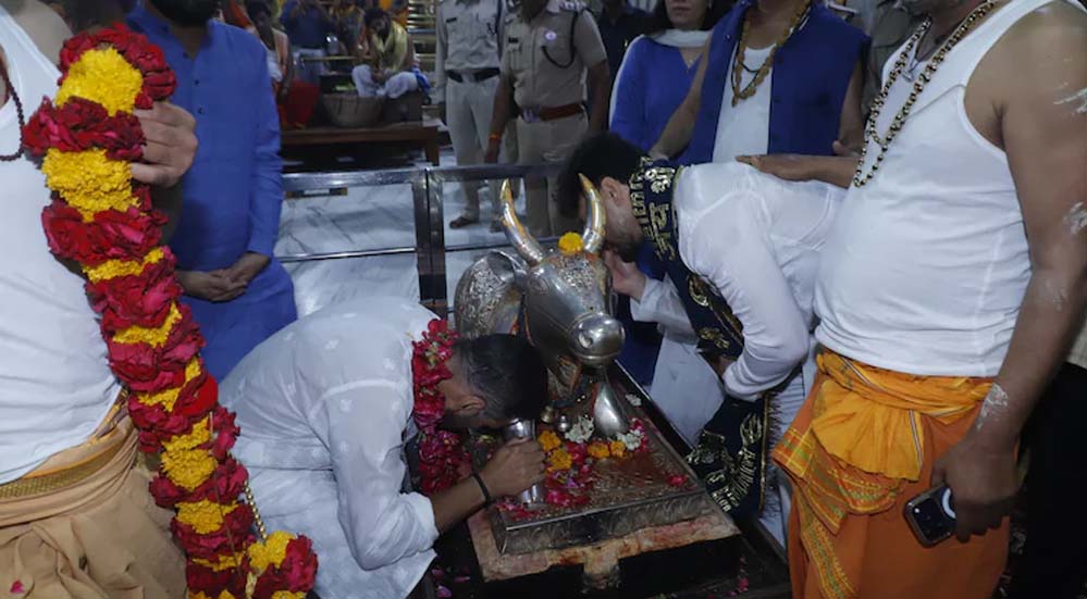 Home मध्य प्रदेश अक्षय और टाइगर का महाकाल दरबार में आशीर्वाद, नंदी के कान में...