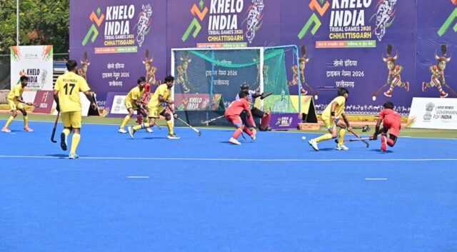 खेलो इंडिया ट्राइबल गेम्स में आज रायपुर के सरदार वल्लभ भाई पटेल अंतरराष्ट्रीय हॉकी स्टेडियम में पुरुषों की हॉकी में छत्तीसगढ़ और मध्यप्रदेश के बीच तीसरे और चौथे स्थान के लिए मैच खेला गया। इसमें छत्तीसगढ़ ने मध्यप्रदेश को 14-6 से हरा कर कांस्य पदक जीता।