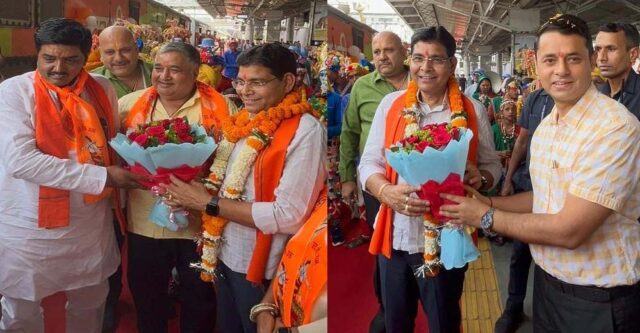 कैबिनेट मंत्री राजेश अग्रवाल एवं टंकराम वर्मा ने रायपुर रेलवे स्टेशन पर स्पेशल ट्रेन को हरी झंडी दिखाकर श्रद्धालुओं को रवाना किया