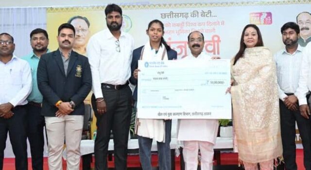 उप मुख्यमंत्री अरुण साव ने सौंपा चेक, राज्य में पहली बार किसी खिलाड़ी को दी गई है इतनी बड़ी प्रोत्साहन राशि